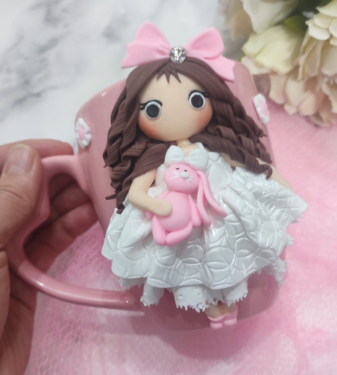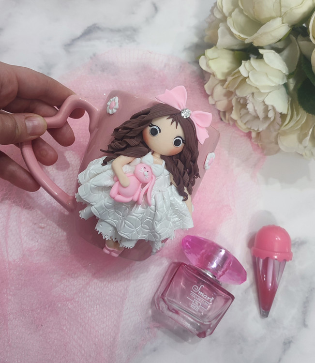 عروسک روی ماگ دستساز و از جنس خمیر پلیمری میباشد💞