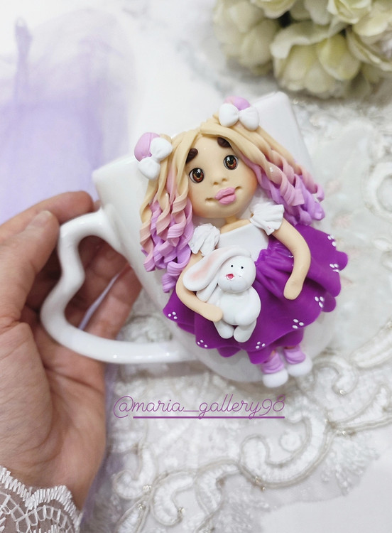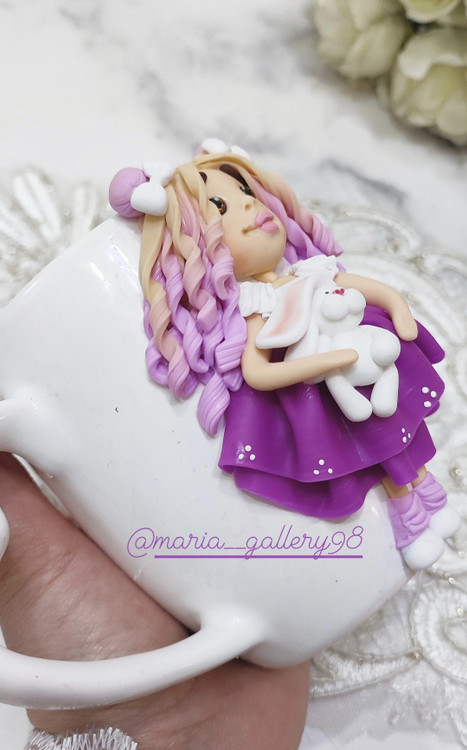 ماگ دستساز دخترانه عروسکی مدل دختر بنفش