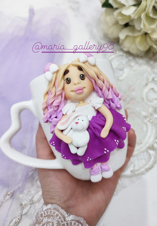 عروسک روی ماگ دستساز و از جنس خمیر پلیمری میباشد💞