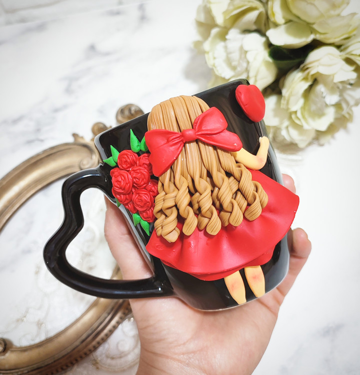 عروسک روی ماگ دستساز و از جنس خمیر پلیمری میباشد💞