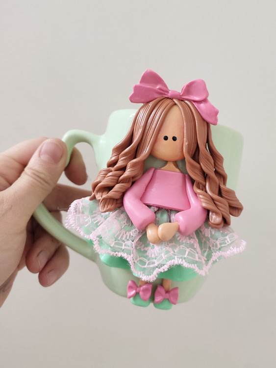 عروسک روی ماگ دستساز و از جنس خمیر پلیمری میباشد💞