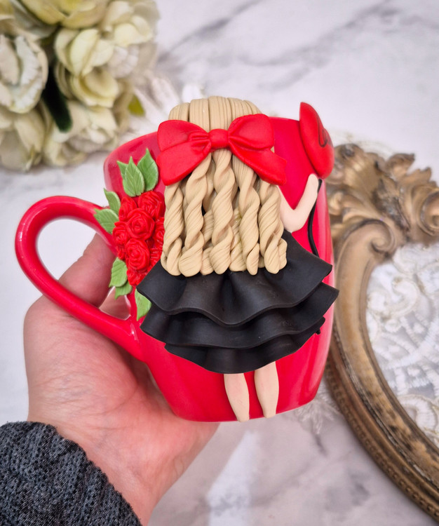 عروسک روی ماگ دستساز و از جنس خمیر پلیمری میباشد💞