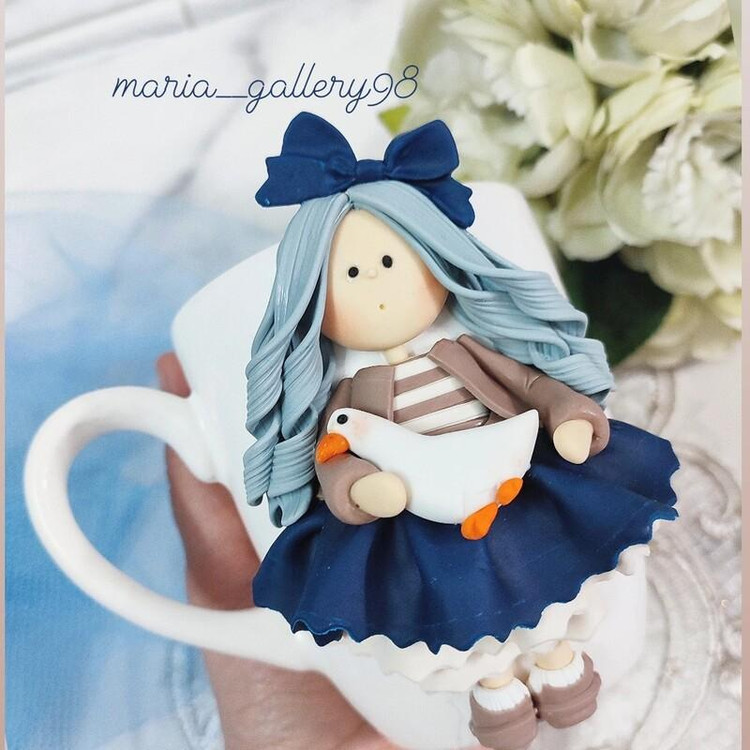 عروسک روی ماگ دستساز و از جنس خمیر پلیمری میباشد💞