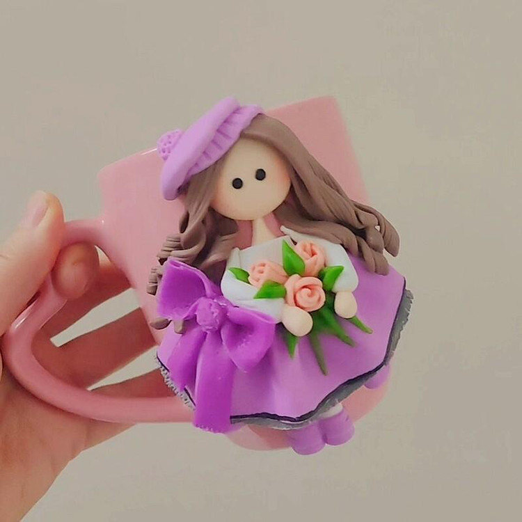 عروسک روی ماگ دستساز و از جنس خمیر پلیمری میباشد💞