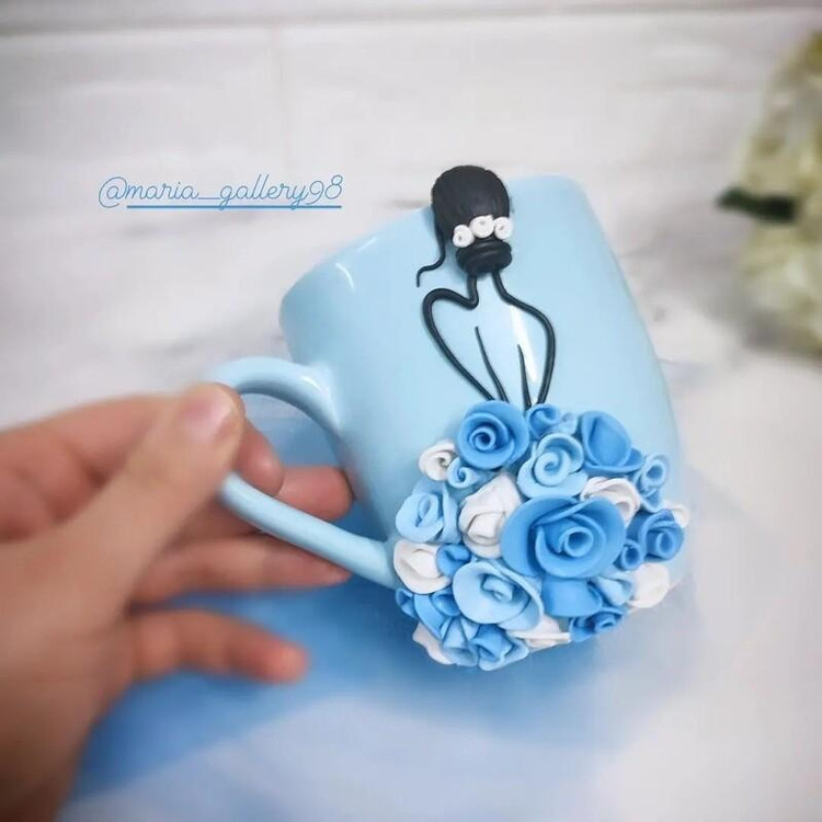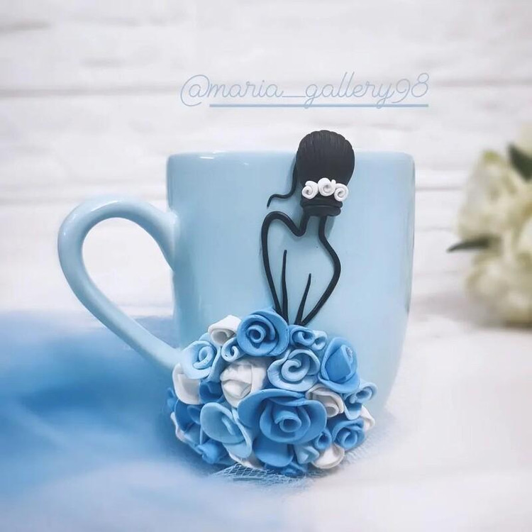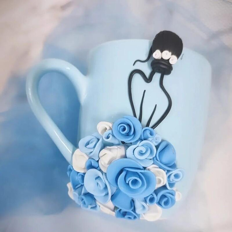عروسک روی ماگ دستساز و از جنس خمیر پلیمری میباشد💞