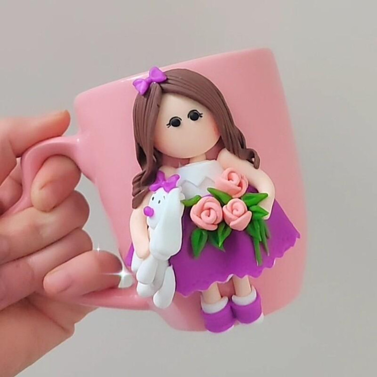عروسک روی ماگ دستساز و از جنس خمیر پلیمری میباشد💞