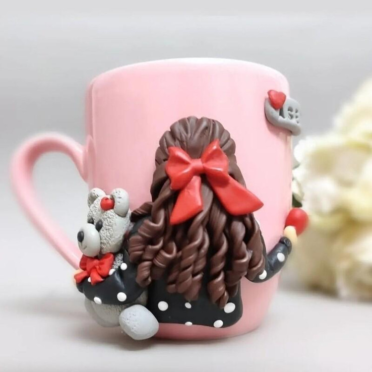 عروسک روی ماگ دستساز و از جنس خمیر پلیمری میباشد💞
