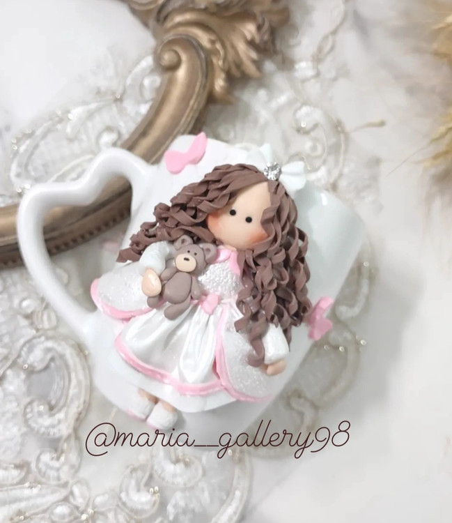 عروسک روی ماگ دستساز و از جنس خمیر پلیمری میباشد💞