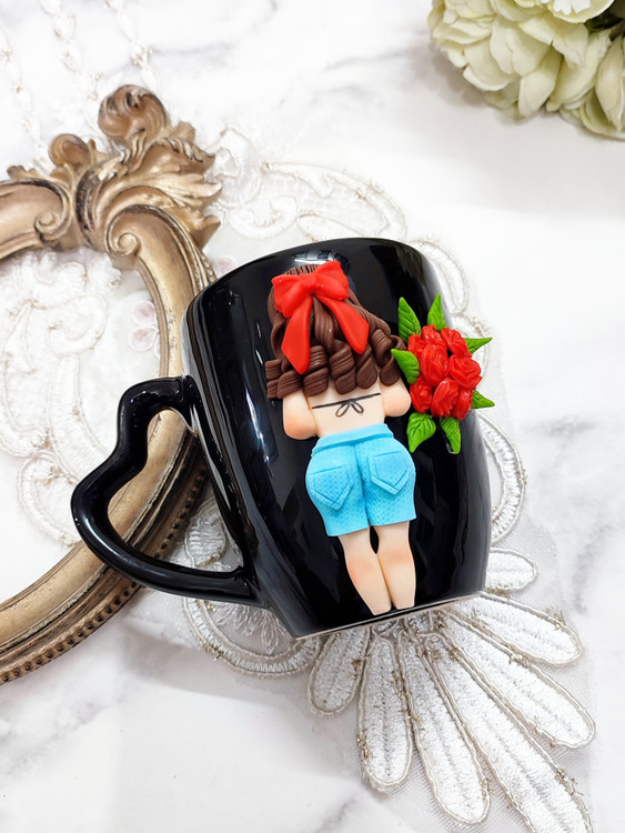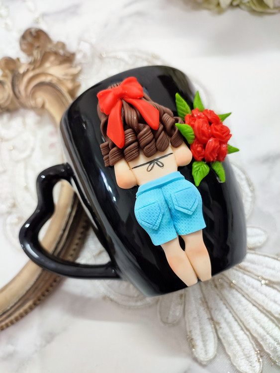 عروسک روی ماگ دستساز و از جنس خمیر پلیمری میباشد💞