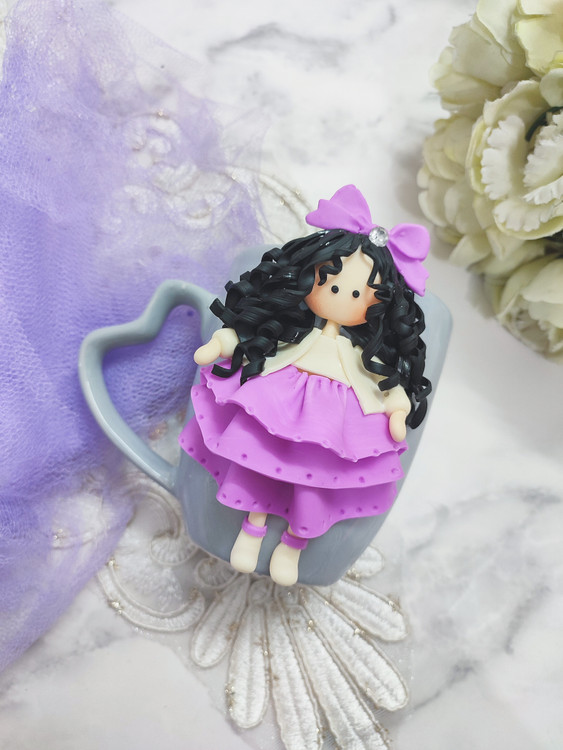 عروسک روی ماگ دستساز و از جنس خمیر پلیمری میباشد💞